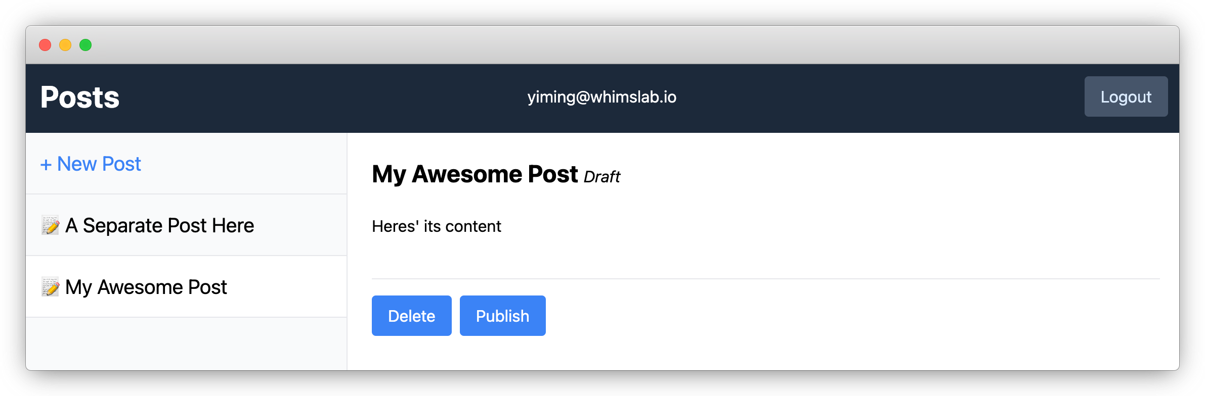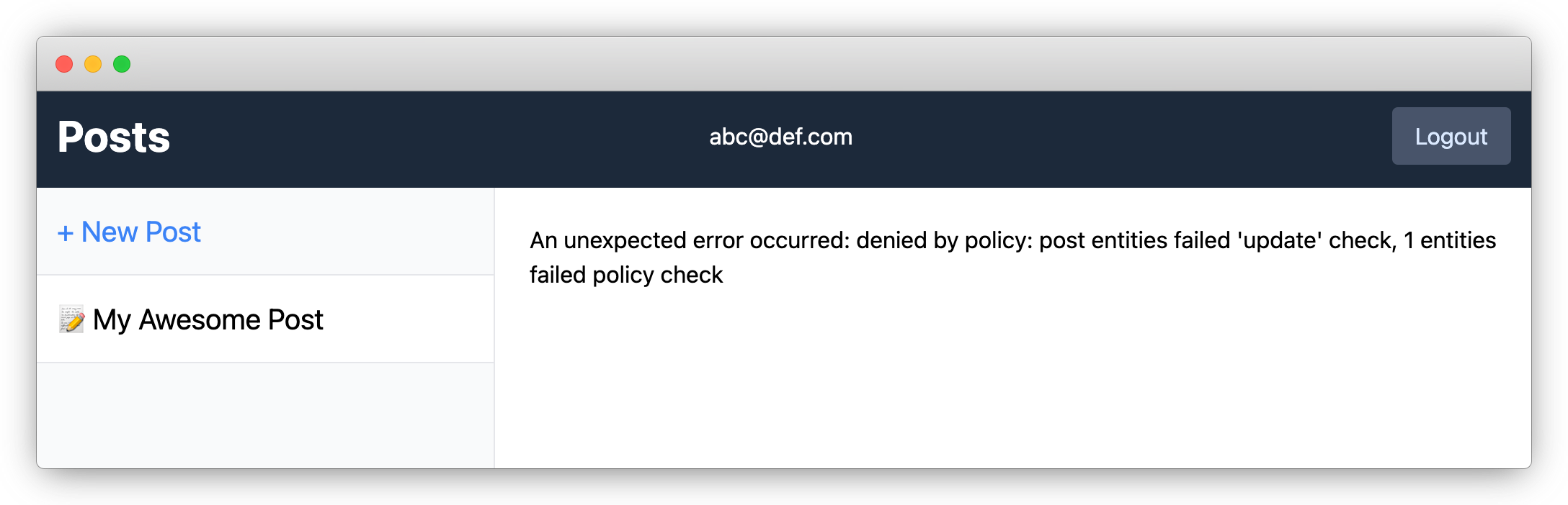 Notice that we don't need to filter the posts by user id? Still at runtime, only posts belonging to the current user will be returned. This is because of the access policy we previously defined in the Post model.